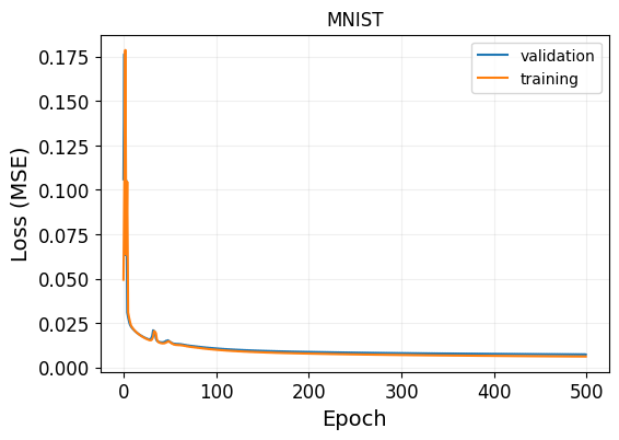 We test the concepts introduced above using the MNIST dataset. MNIST stands for Modified National Institute of Standards and Technology and the dataset consists of \(28\times28\) images of handwritten digits. Here, we will perform a regression task trying to predict the value of the digit from the image.