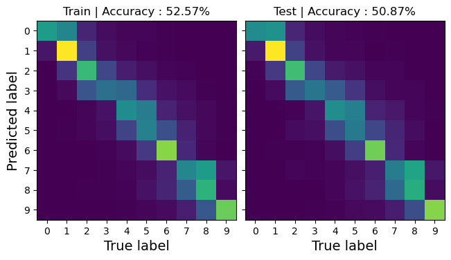 As we can see, the accuracy matrix has quite diagonal structure! With an accuracy far beyond what we would obtain from a random guess! We see, however, that most errors occur between consecutive classes, which is mainly due to rounding errors from the imperfect regression.